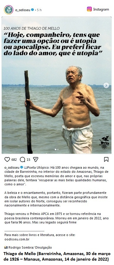Blaise Cendrars, pseudônimo de Frédéric Louis Sauser (La Chaux-de-Fonds, Suíça, 1 de setembro de 1887 — Paris, França, 21 de janeiro de 1961). A critica e curadora de arte Aracy Amaral (São Paulo, 22 de fevereiro de 1930) chama a atenção para o fato de Blaise Cendrars ser conhecido e estudado pelos modernistas já antes da Semana de Arte Moderna de 22, tendo Influenciado Mário de Andrade, Manuel Bandeira, Luiz Aranha e, em particular, Oswald de Andrade, além de de ser fundamental na definição da pintura de Tarsila do Amaral