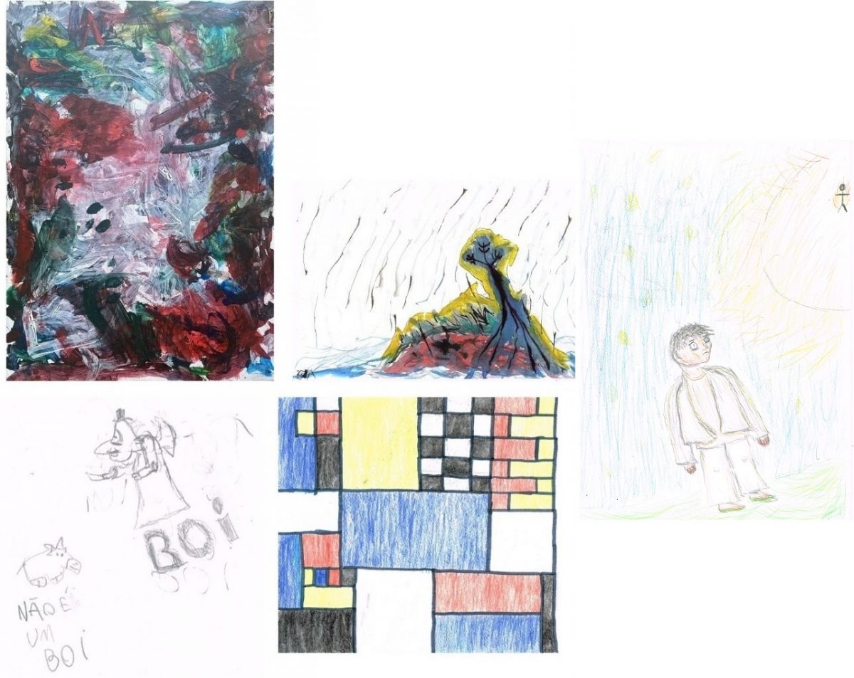 De criança, preferia com as mãos; crescido, algo brotando; mistério e susto no personagem; o humor, qualidade de sempre e inspirado em Piet Mondrian, estudando. Tudo criado por João…