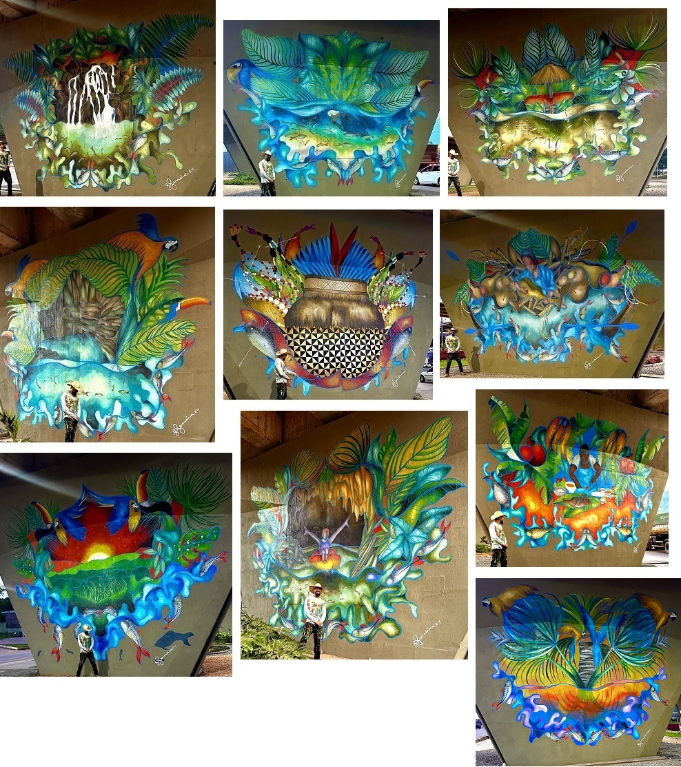 Em março de 2024, recebemos uma solicitação de orçamento para a pintura de murais no viaduto de Nobres (município turístico situado a cerca de 120 km da capital mato-grossense), em duas modalidades: apenas um mural e um total de 18 murais que envolveria todo o viaduto.