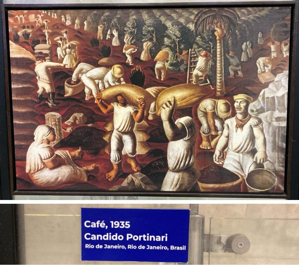 “Café” (1935) é uma obra-prima de Candido Portinari, óleo sobre tela (130 x 195 cm), que retrata a dureza do trabalho nas lavouras cafeeiras paulistas, destacando trabalhadores negros e imigrantes com pés exagerados (raízes), simbolizando sua ligação com a terra. A obra, que recebeu menção honrosa no Instituto Carnegie, está no Museu Nacional de Belas Artes. Entre as suas principais Características está a temática social, retratando a labuta, homens carregando sacos e mulheres na colheita, focando na força do trabalho braçal. E também o fato dos trabalhadores terem pés disformes e grandes, que o artista descreveu como “terríveis e pacientes”, representando o esforço de marcha e a união com o solo. Essa pintura ajudou a consolidar Portinari no cenário internacional, ganhando prestígio no Instituto Carnegie em Pittsburgh, EUA.