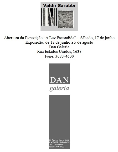 Exposição póstuma, em 2006: “A luz escondida” (Valdir Sarubbi), na Dan Galeria