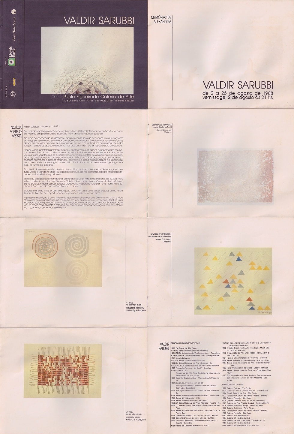 Mini catálogo: Valdir Sarubbi, “Memórias de Alexandria” (1998), exposição ocorrida na Paulo Figueiredo Galeria de Arte. 8 páginas.